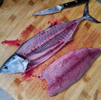 Life by the sea has so many advantages, but one thing makes life by the sea especially worth living. It is the many possibilities in the kitchen, with me now very marked by the fish. Not always so easy to decide which fish is prepared how, after which there are also incredibly many variations of preparation for each fish. The seasonal availability facilitates however already once the selection. In addition comes likewise; do I like raw fish? Or do I prefer it boiled, cooked, poached, grilled, ...? For me it also depends on the time of day how I prepare my fish. When I go to the harbour, I usually don't even know what dish will be on the table today. In any case, the early bird catches the worm, so if you want good and fresh fish, you have to get up early. Especially if you want to eat the fish raw. For today's recipe I was already at the harbour at half past eight. When it's warm and sunny, I usually opt more for light dishes where the fish is very often served raw. One of my favourite dishes for such days is a nice, light and refreshing ceviche. Like bonito, it belongs to the tuna family, but makes a pleasant change in ceviche. It's pink meat, which has a completely different structure compared to cod, makes you discover a whole new ceviche.