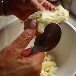 First we start to pluck the soft cheese with a spoon. This leads to more pleasant pieces and a finer mouthfeel.