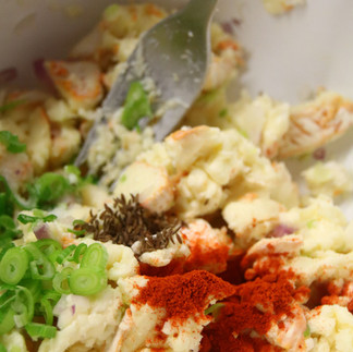 Then we add the paprika, caraway and salt and mash everything with a fork. The mashing makes for a creamier experience. It is precisely from this process that the name "Obazn" for lightly pressed comes.